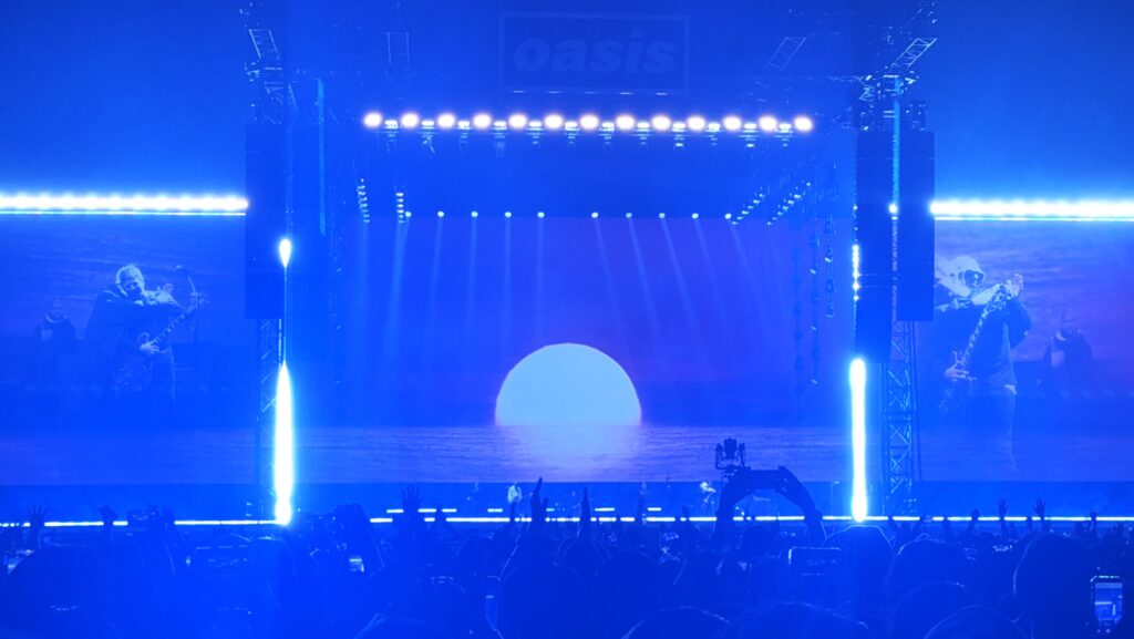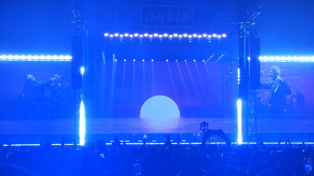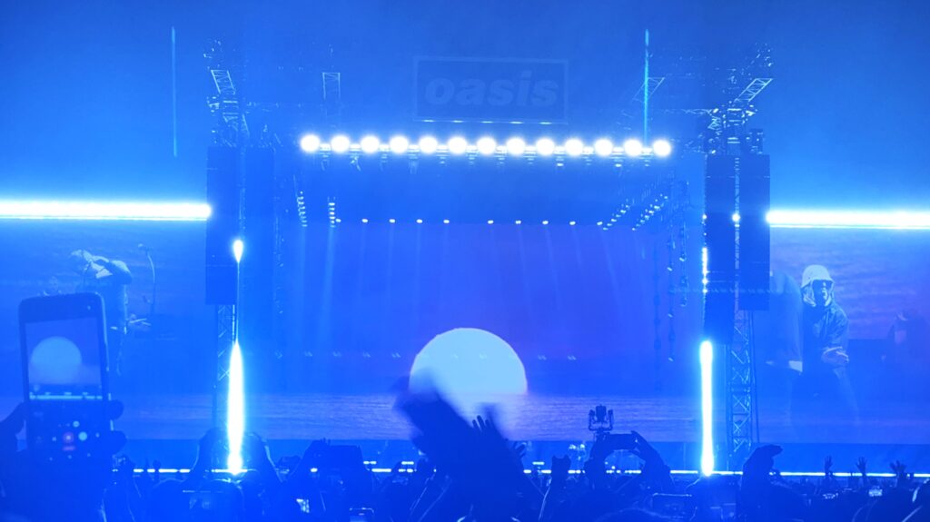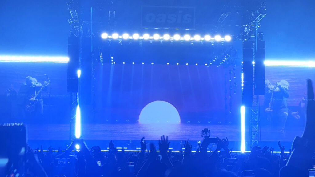 今日の席はアリーナのほぼ最後部。そのためかどうか分からないが、ライブ中、とにかく暗い(ステージの照明が自席まで届かない)。その暗い照明のお陰で周囲やスタンドがよく見えず、超巨大なライブハウス、それが言い過ぎなら、巨大なコンサートホールでオアシスを観ているように感じる。屋根があるドームの効果で、ギャラガー兄弟の美しいハーモニーを強い音圧で聴くことができた。