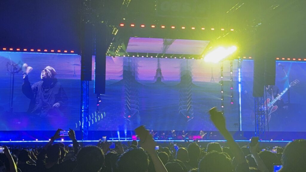 日本人は体格的に欧米人には敵わないので(楽器の大きさが違う)、欧米でのライブと較べれば、ステージ上のメンバーに届く歌声は小さいだろう。それでもリアムは「Champagne Supernova」の演奏を始める前に「ここ(日本)には30年来てるけど、いつもお前らは素晴らしい(『素晴らしい』を意味するスラング、”bollocks”と聞こえた)。ここはとても特別な場所なんだ」と観客に語りかけた。僕の知る限り、このツアーでリアムがこんなことを言ったのは今夜だけだ。
