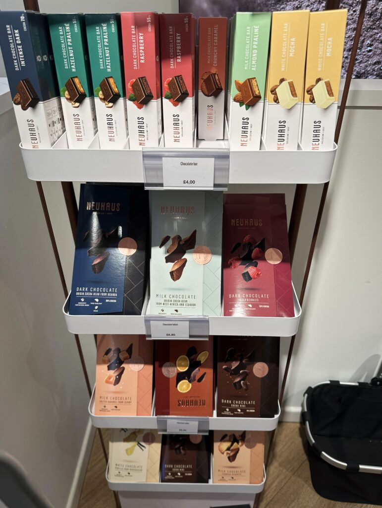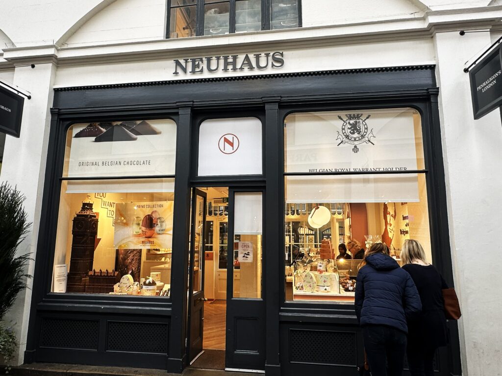 ノイハウスとウィッタードはロンドンの観光名所コヴェント・ガーデンに店舗があり、リチュアルズもコヴェント・ガーデンから数分のところに店舗がある。ほぼワンストップで買い物が終るので、旅行者にとっては買い物しやすい。