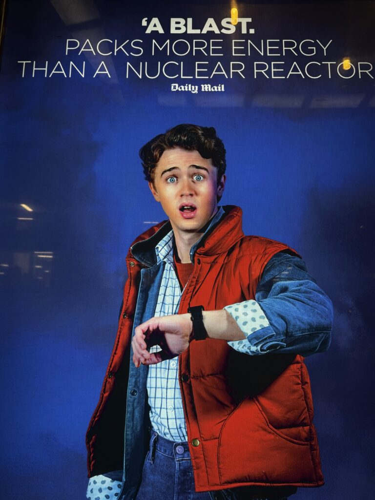 5年前に上演が始まった「Back To The Future The Musical」のロンドン公演が4月に終わると聞き、観納めに行く。この演目は2023年3月に初めて観て以来、1)映画再現度の高さ(マーティ、ドクのそっくり度高し)、2)生身の演技、生演奏の臨場感、3)手に汗握るデロリアンの疾走に魅せられ、これまでに何度か観劇している。