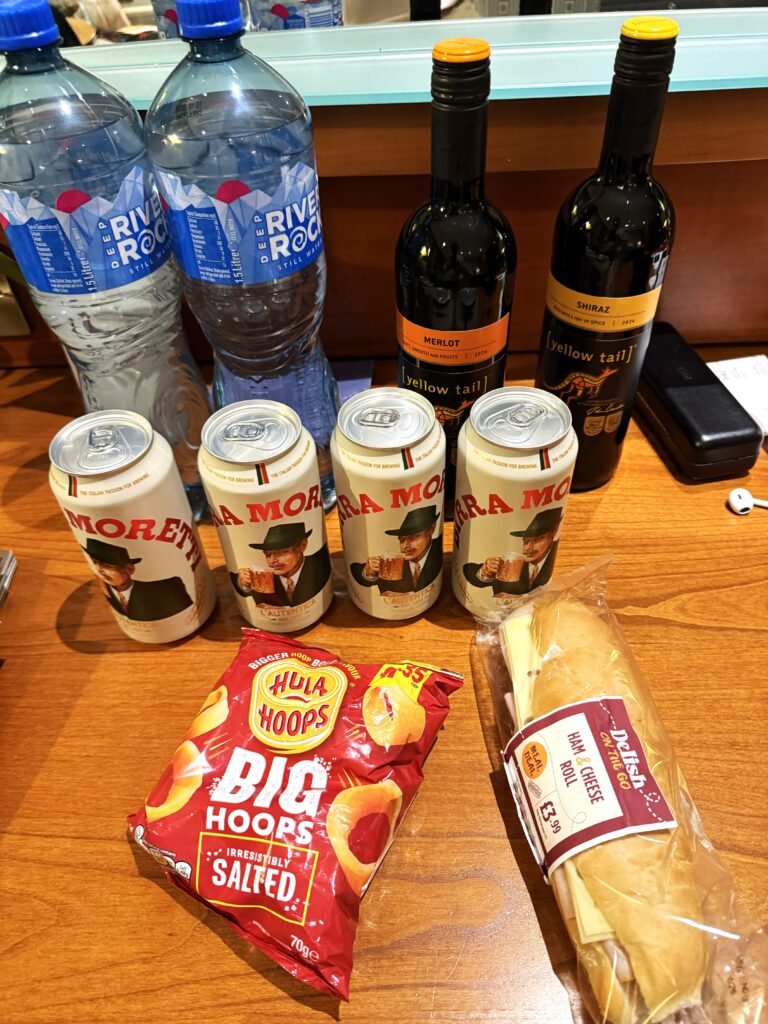 あいにく酒の取扱いがなく、さらに20分歩いてテスコ・エキスプレスに行ってワイン2本とビール4缶を購入。